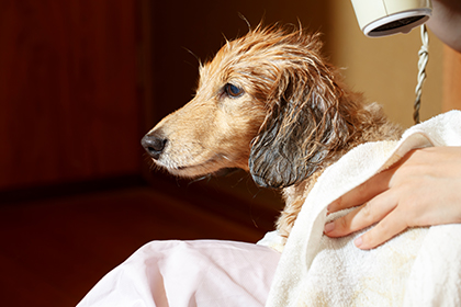 当店ではすべてのわんちゃんにシャンプー後、セラミドが入った保湿剤を使用し、全身保湿いたします。